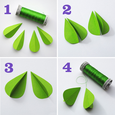 2. Нарезайте бумагу в виде капель, сгибайте по середине